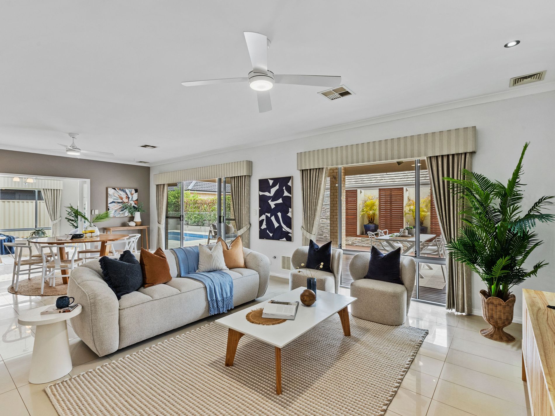 • Ducted air conditioning and ceiling fans for year-round comfort